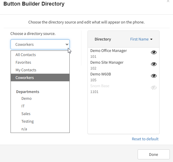 You can filter the directory by All Contacts, Favorites, My Contacts, Coworkers, or Department.