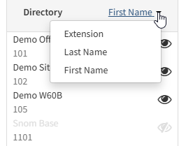 You can sort the directory by Extension, First Name, or Last Name.
