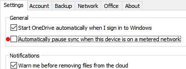 Disable Automatic Pause of OneDrive sync on metered or cellular networks