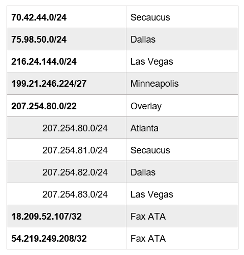 For web socket and api connections, it is recommended that the customer allow traffic to ws.connectuc.io, api.connectuc.io, and *.reachuc.com versus trying to lock down traffic to particular IP addresses.